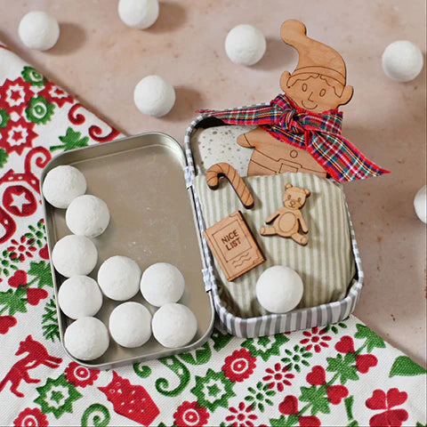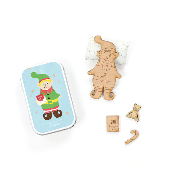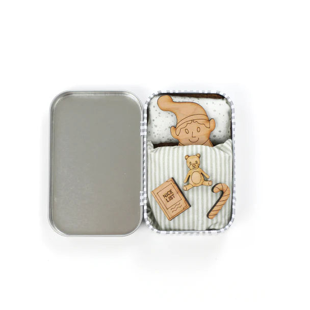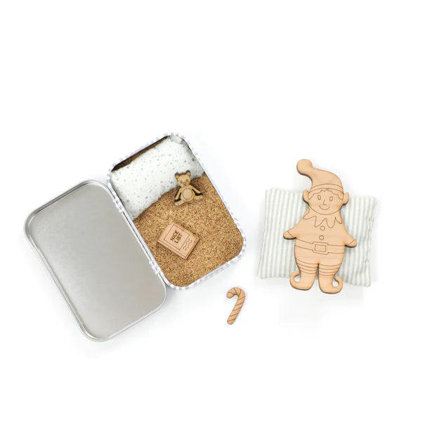 This mini cherry wood elf is keen to add friendly & helfpul children onto its Nice List for this year. Each elf is housed in our sweet stripy personalised tins along with a cosy duvet & pillow, a little teddy, its nice list & a tasty candy cane. For those wanting to upgrade to the chocolate option, this is a twist on the traditional advent calendar. Children will be rewarded with a chocolate coin in their tin each morning if they behave well & look after the Elf.