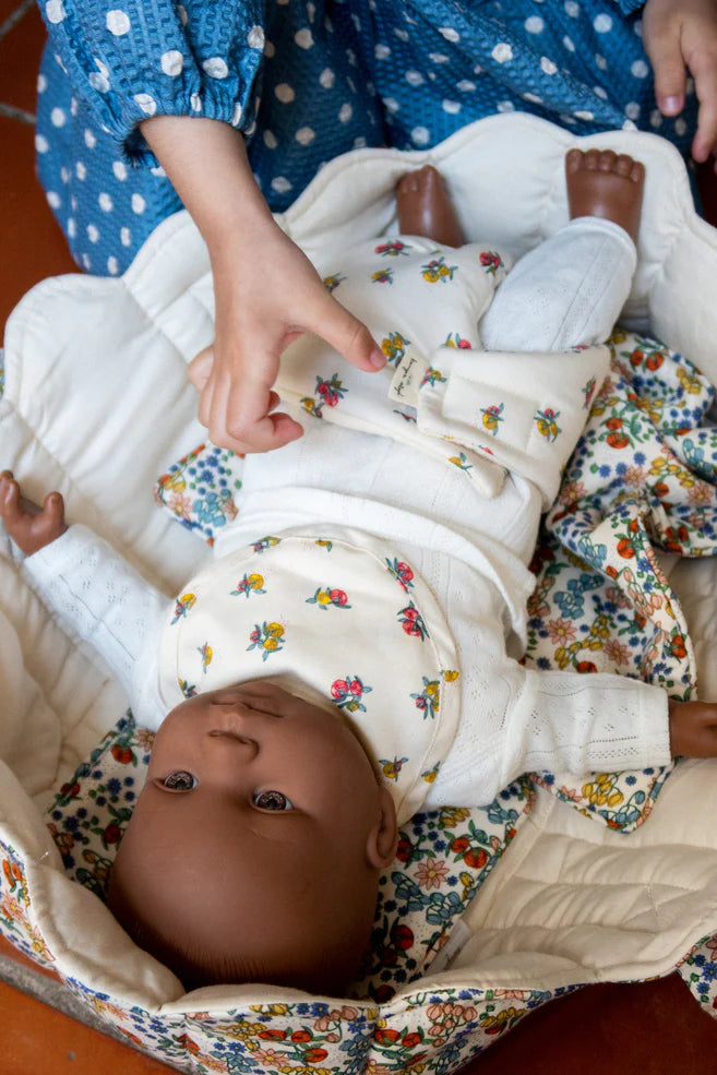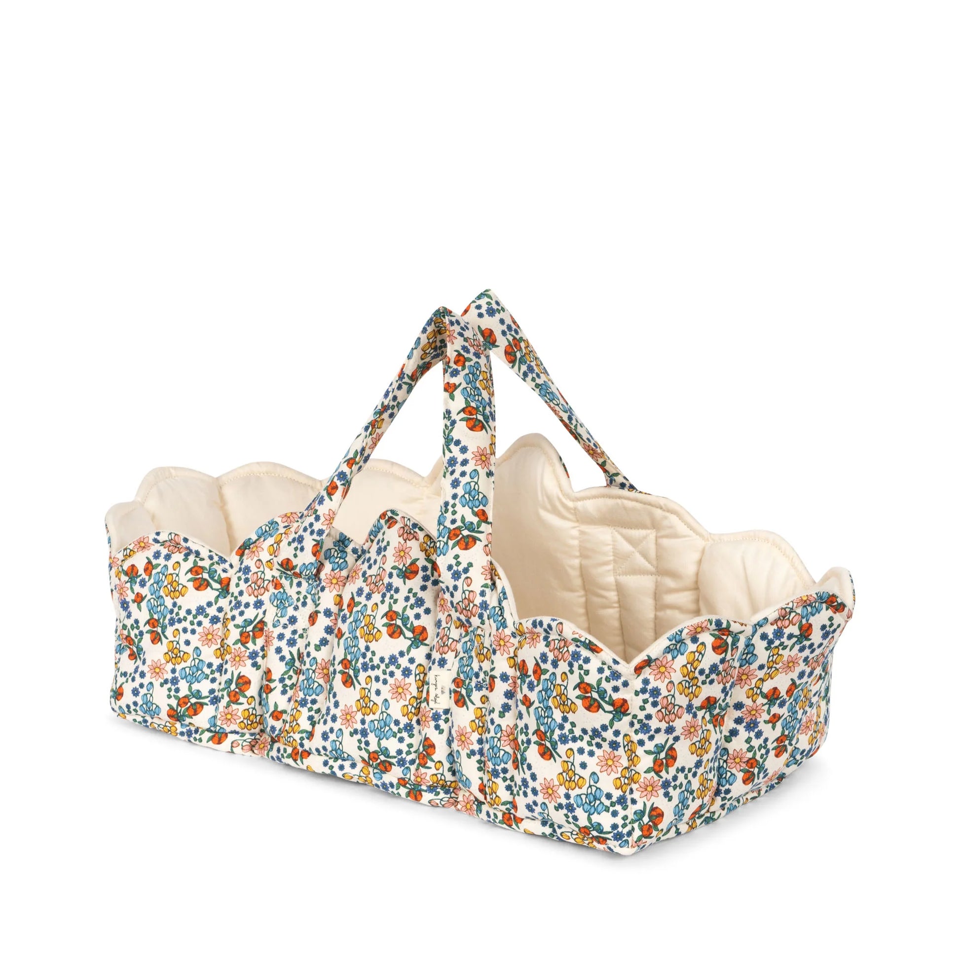 Padded doll lift made in 100% organic cotton. Designed with practical carry straps, soft piping, and scallop edges.