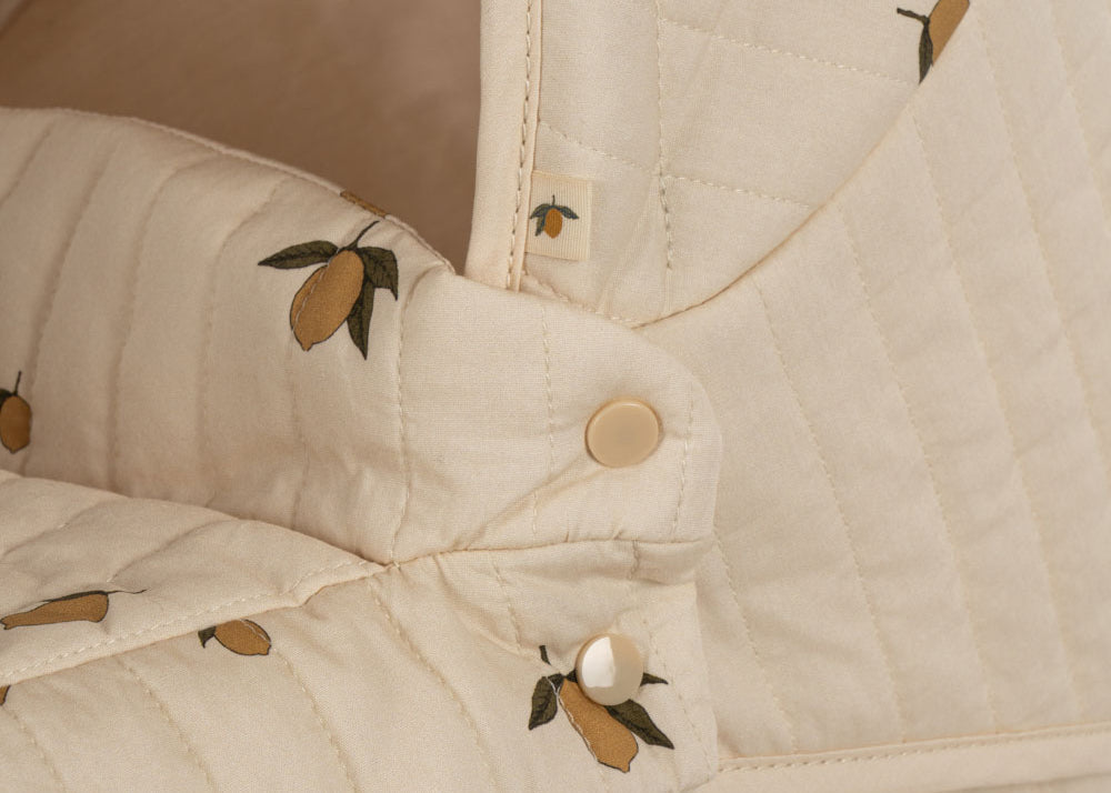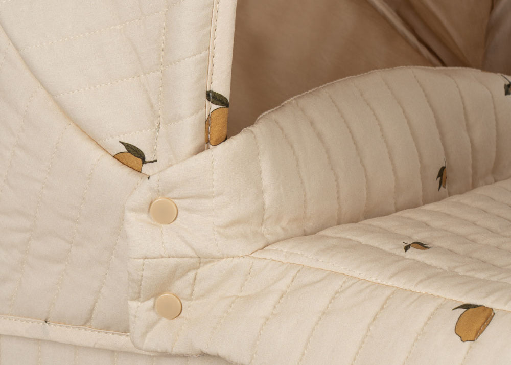 Designed with four large wheels that make it easy and stable to walk with, quilted fabric and delicate scallop edges.