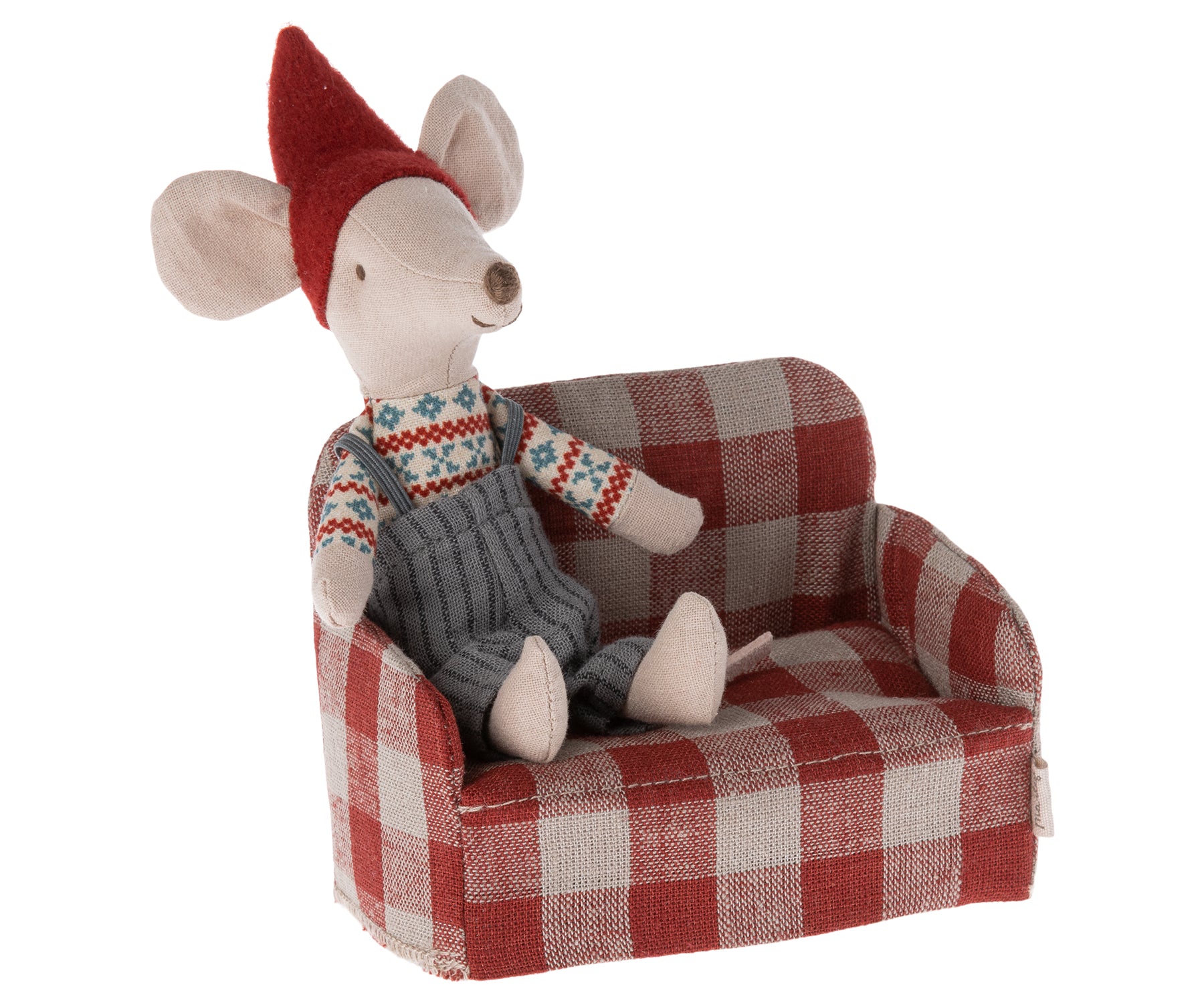 A perfect place for your small Maileg friends to take a rest. It fits nicely into the Maileg Gingerbread House. The couch is delivered flat packed and is easy to fold and assembly.