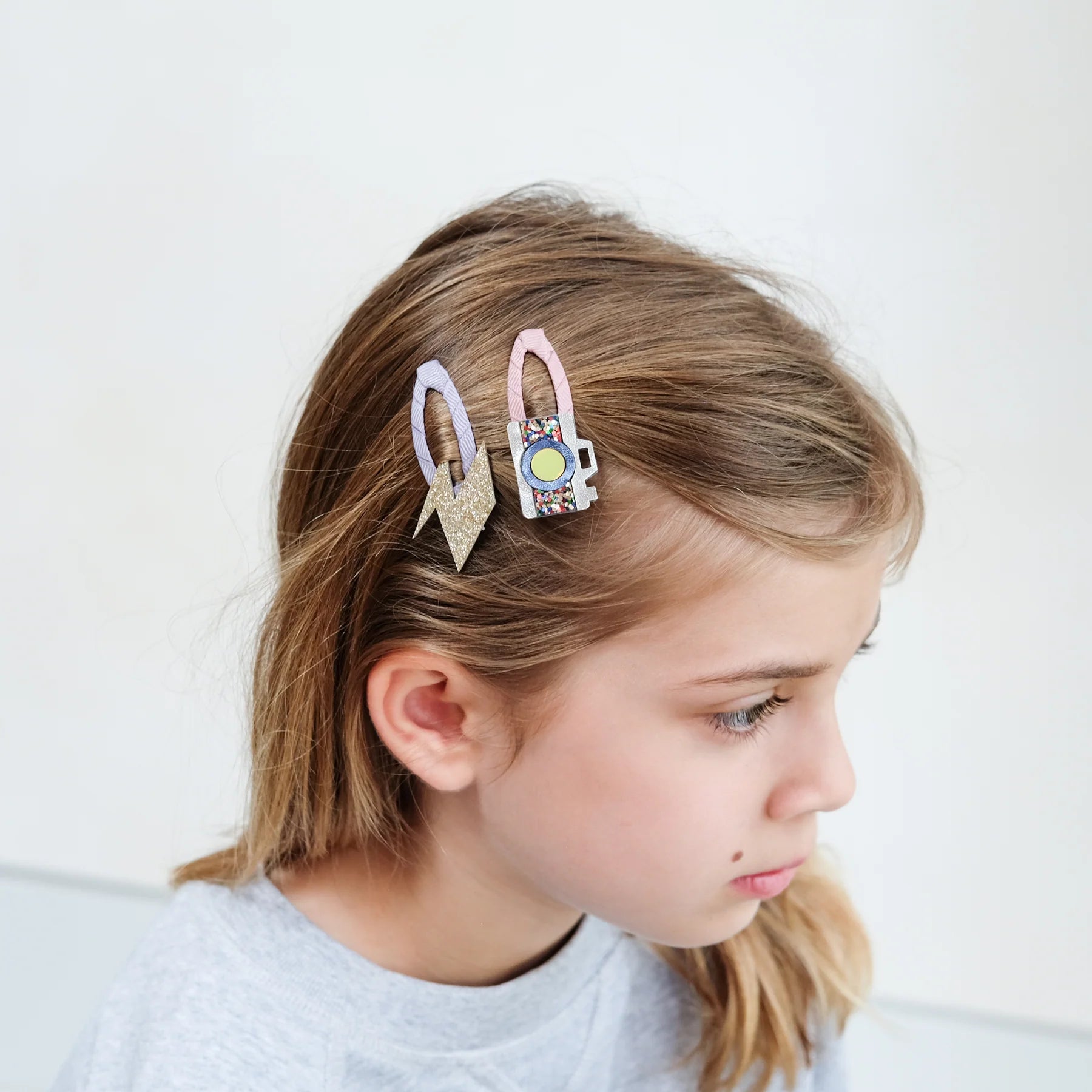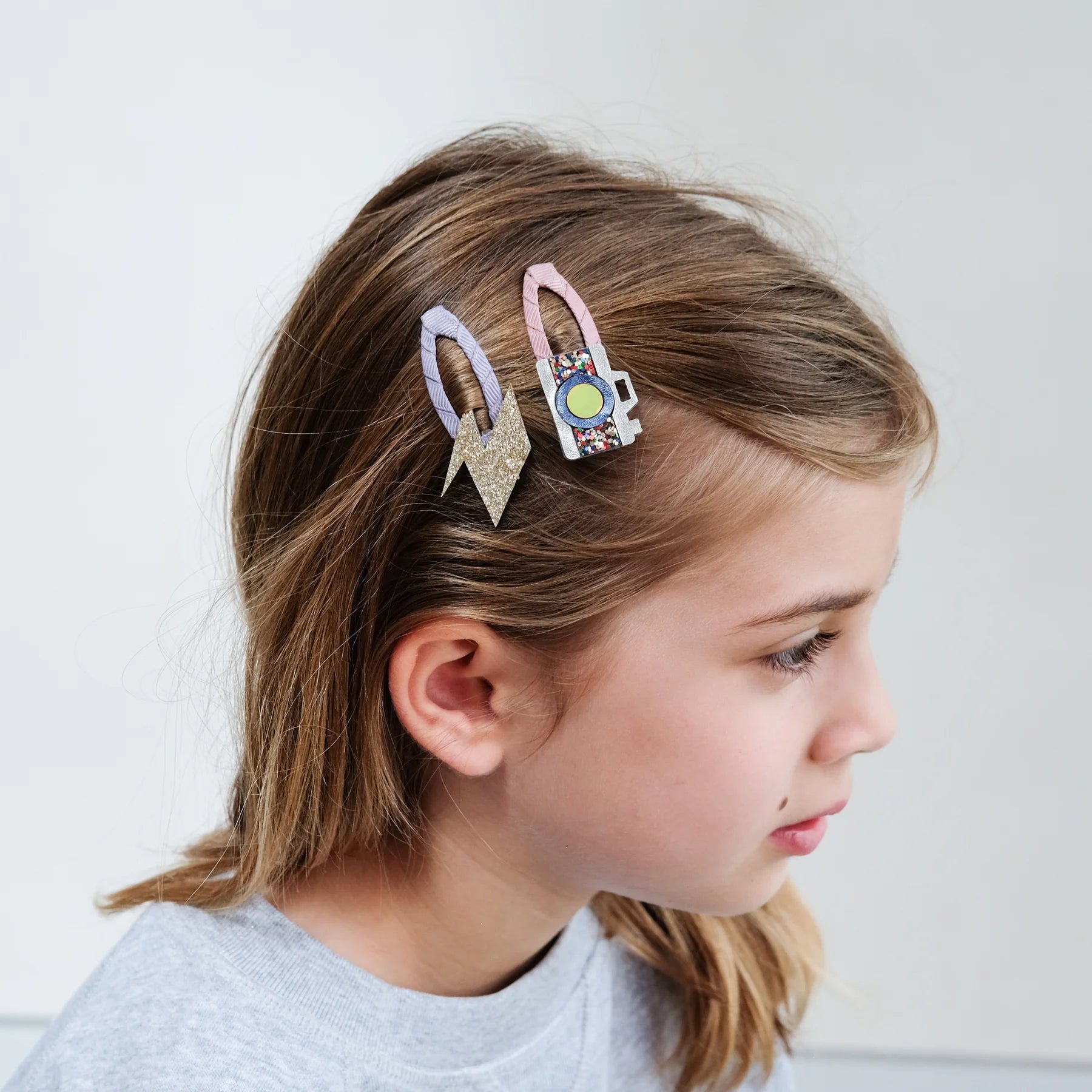 Lights, camera, action! Two gorgeously glittery cameras and two flashes of fabulousness make up this fun packed clip set! Clip them in and get ready to strike a pose!