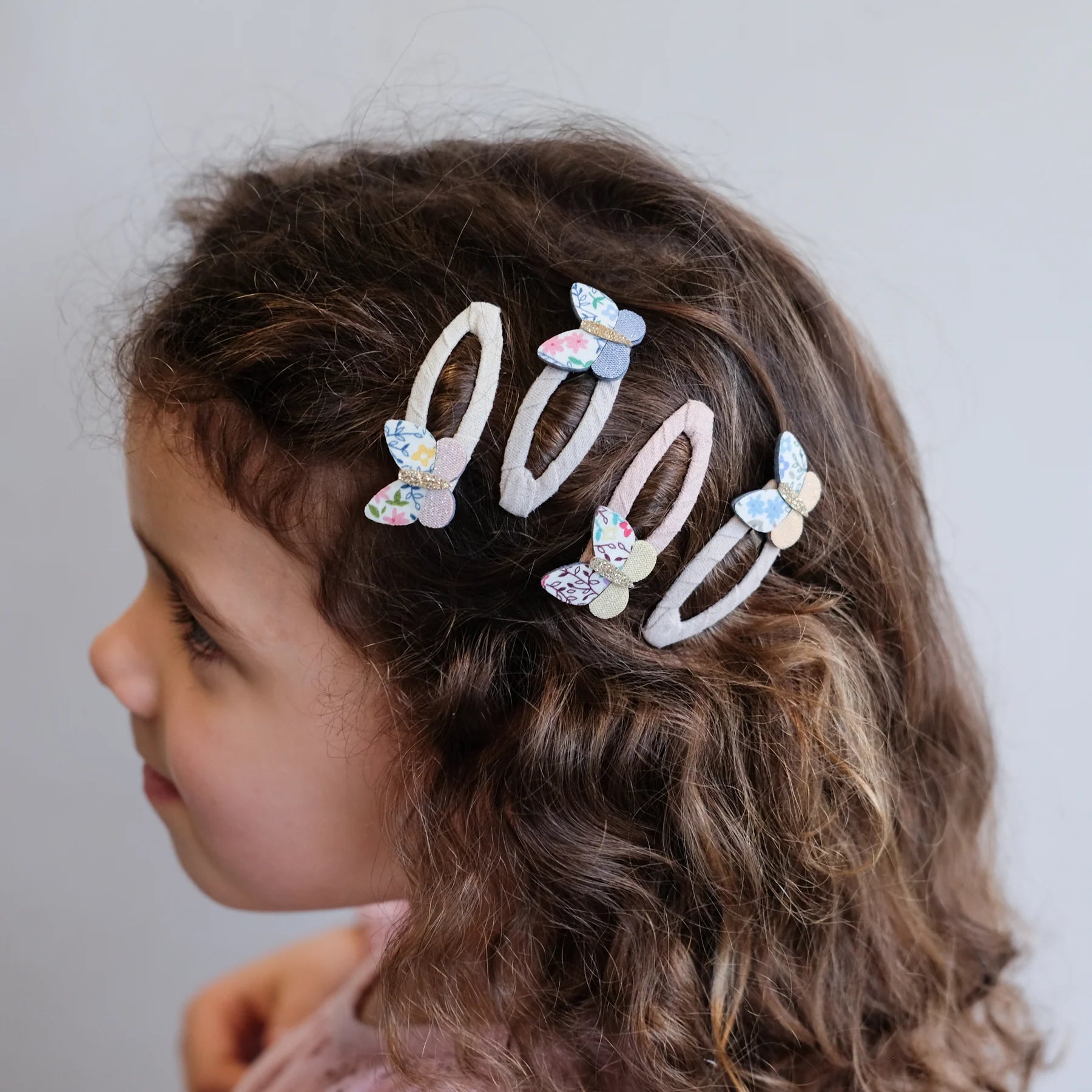 These beautiful new Betty butterfly clips are sure to make hearts flutter! Crafted from a fun mix of floral and glitter fabrics, these would look super pretty decorating any 'do!