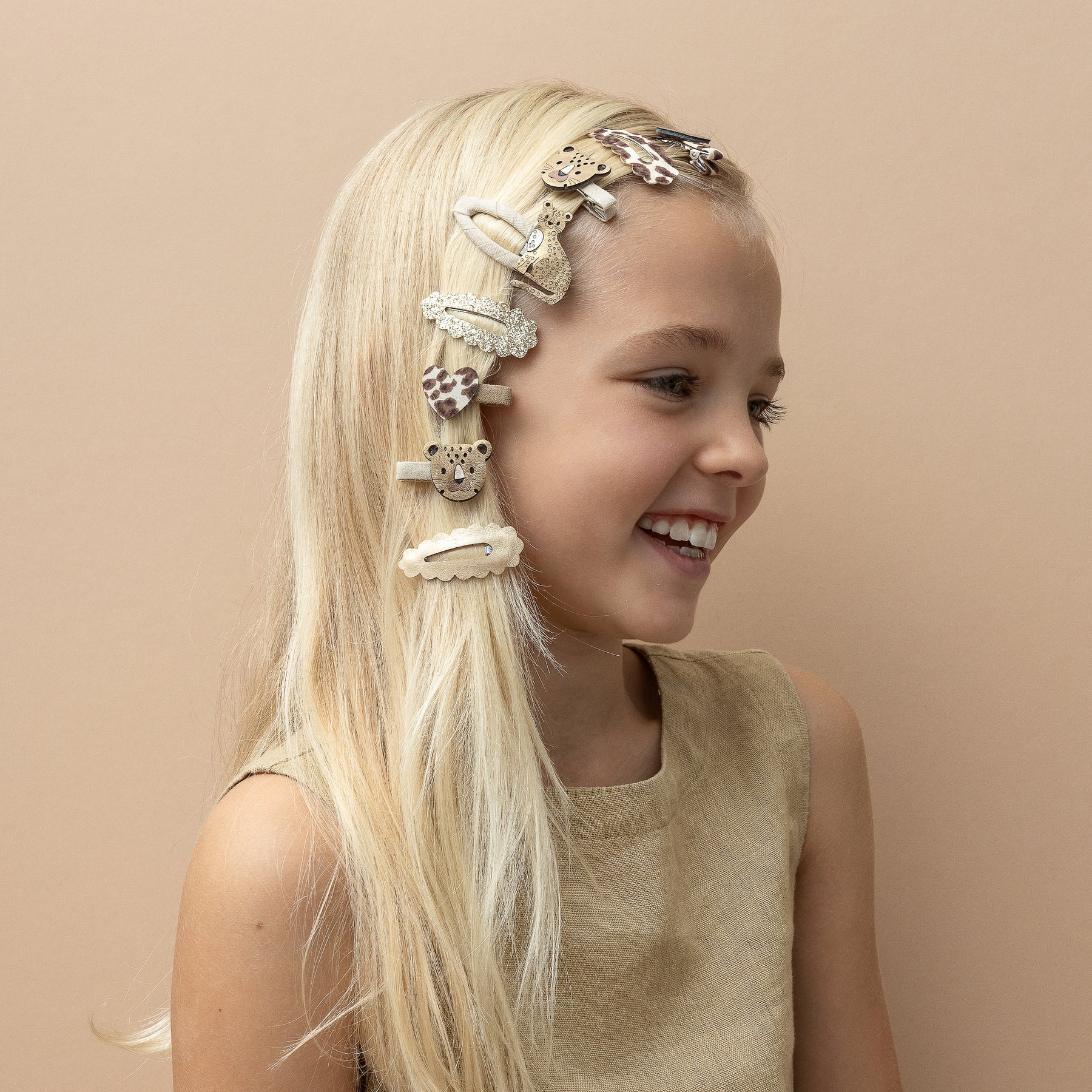 Unleash their wild side with our lovely Leopard scalloped mini clips! Perfectly on trend and coming in a gorgeously neutral palette to compliment any look!