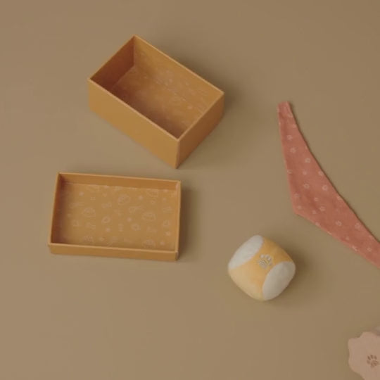 Open the gift-ready box to find a cotton bandana printed with our signature Dinkum Dog rainbows, a plush magnetic ball, and a wooden brush to keep Dinkum Dog coats shiny and clean. The ball is constructed with a magnetic element that allows the Dinkum Dogs to hold their favourite bone in their mouth, so they never miss a delicious surprise.