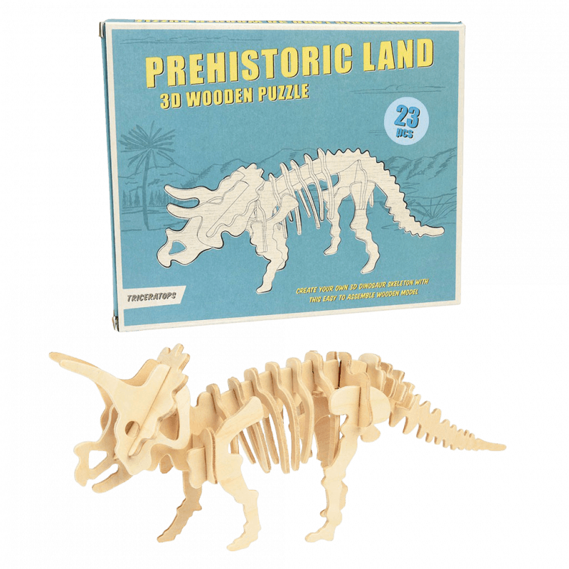 A great gift for creative kids, this 3D wooden puzzle makes a fun Triceratops dinosaur. Contains 23 wooden pieces and instructions. Model measures: