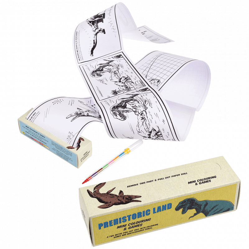 An ideal on-the-go activity to keep kids entertained, this Prehistoric Land kit contains lots of colouring and games, plus a pencil with changeable colours! Box contains: