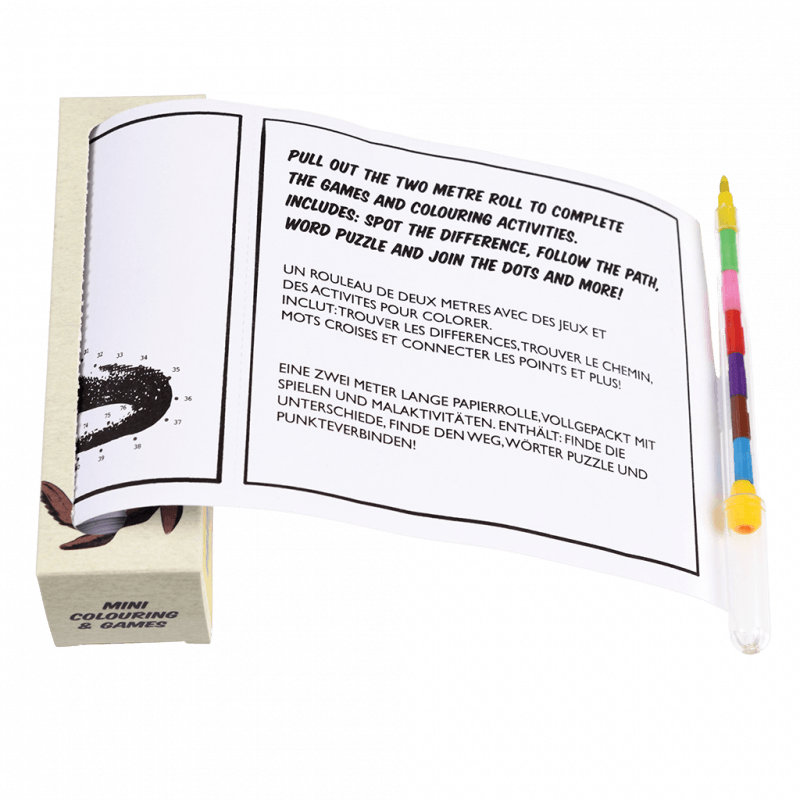 - A two metre pull out roll with games and colouring