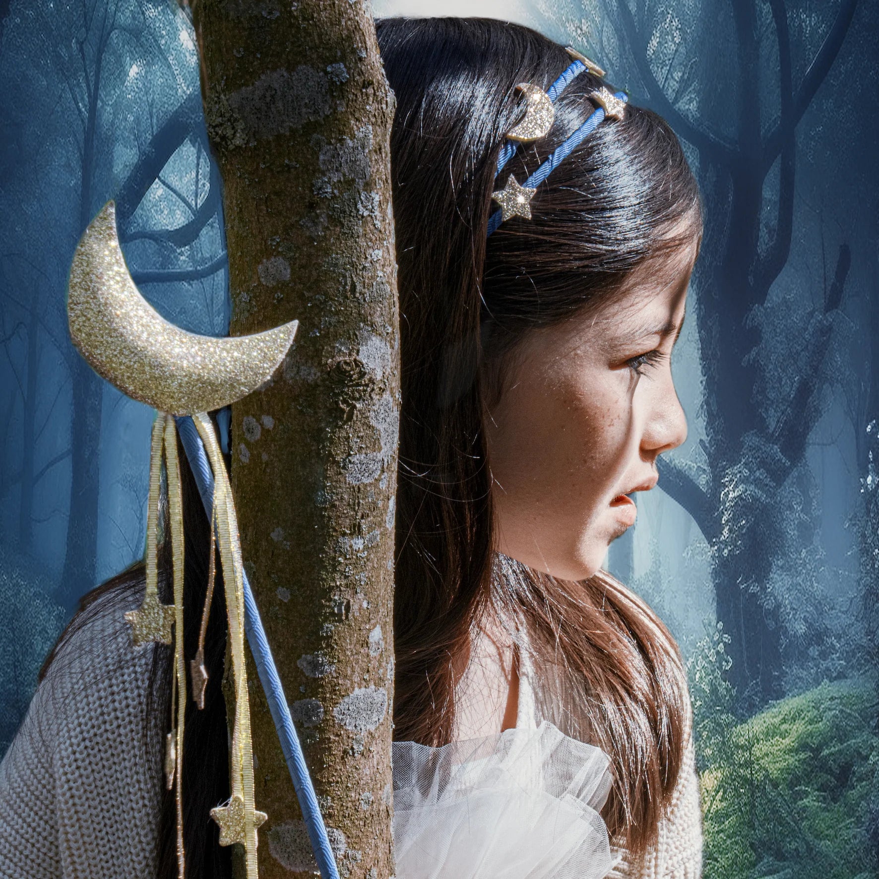 Wave your magic wand and imagine the moon and stars appearing! In gorgeous gold glitter fabric adorned with gold star streamers, this is the perfect wand for magical spells, imagination adventures, or a fun addition to the dressing up box!